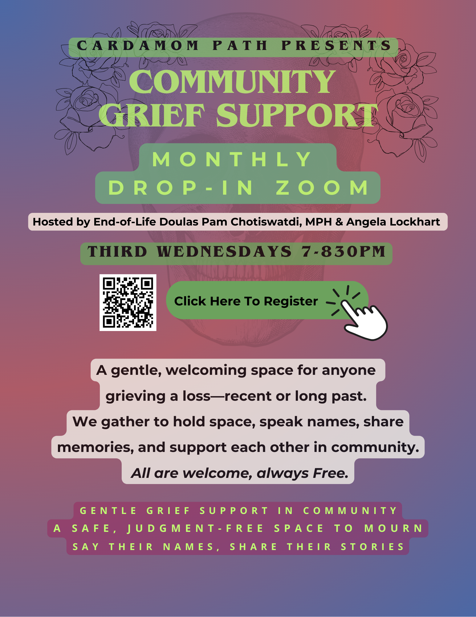 Cardamom Path Grief Support Circle — gentle, judgment-free, community-held, accessible.